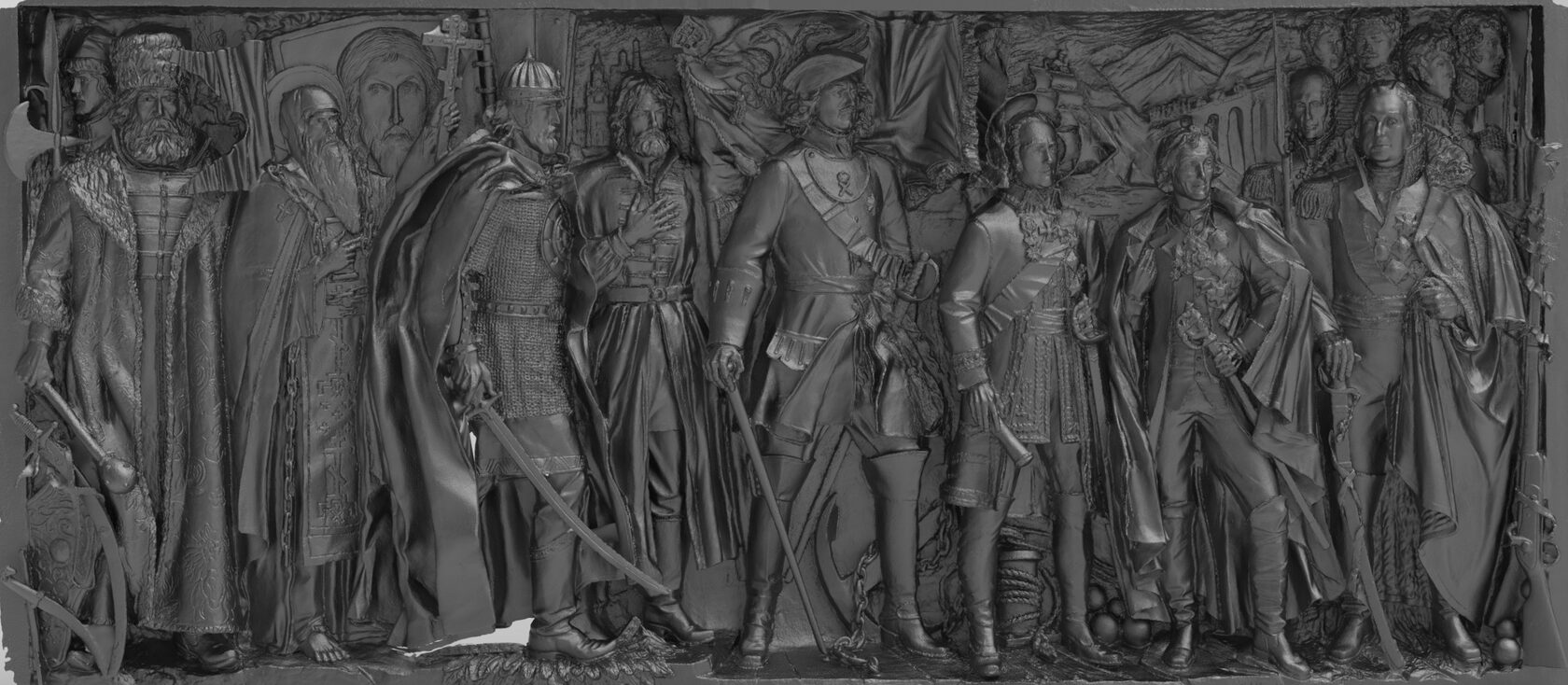 Проводится измерение точек металлического каркаса. Расстояние между всеми узлами уменьшают или увеличивают пропорционально. Затем изготавливают новый каркас и скульптор лепит новую фигуру.